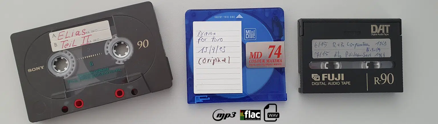 Speziell für Musik und Hörspiele bieten wir Ihnen eine einfache unkomplizierte kostengünstige Digitalisierung Ihrer AudioKassetten, MiniDisc und DAT.